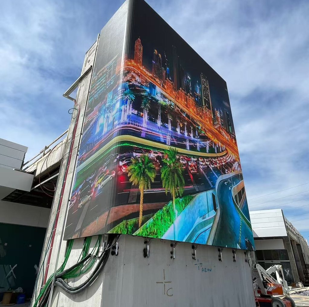 In order to perfectly integrate the LED screen with the wall, and fully consider the iconic value and environmental characteristics of this building, we adopt an innovative design: the left and right sides are installed close to the wall to minimize the protrusion of the structure, making the overall visual appearance thinner and simpler; with smooth curved corners, it is integrated with the modern architectural style of the Middle East, just like a "digital art painting" inlaid on the wall.